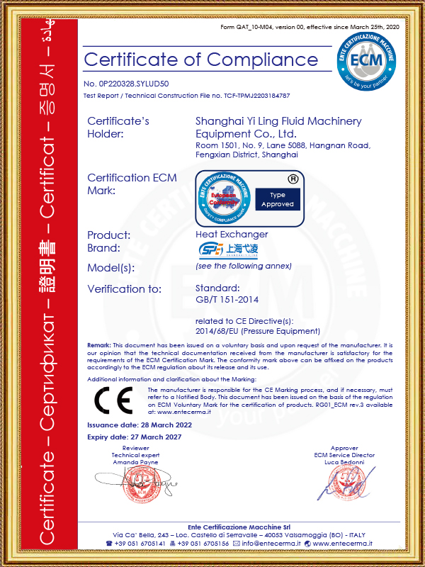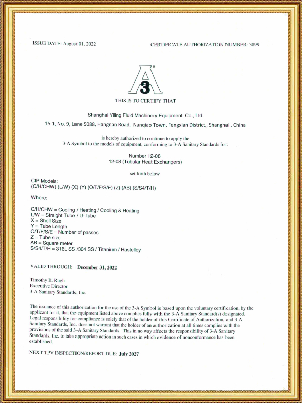 • 3A Atest Sanitarny dla Wymiennika Ciepła