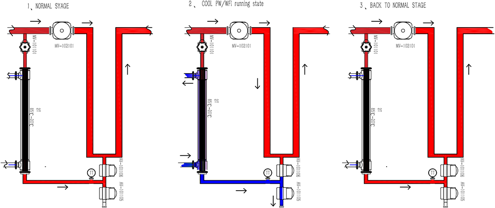 Zgodny z rygorystycznymi przepisami FDA, USP ASME BPE i GMP w przemyśle farmaceutycznym. Gdy system nie działa, gorąca woda w głównym obiegu może być stale dezynfekowana, aby spełnić większość warunków pracy. Dostępnych jest wiele opcji procesu.